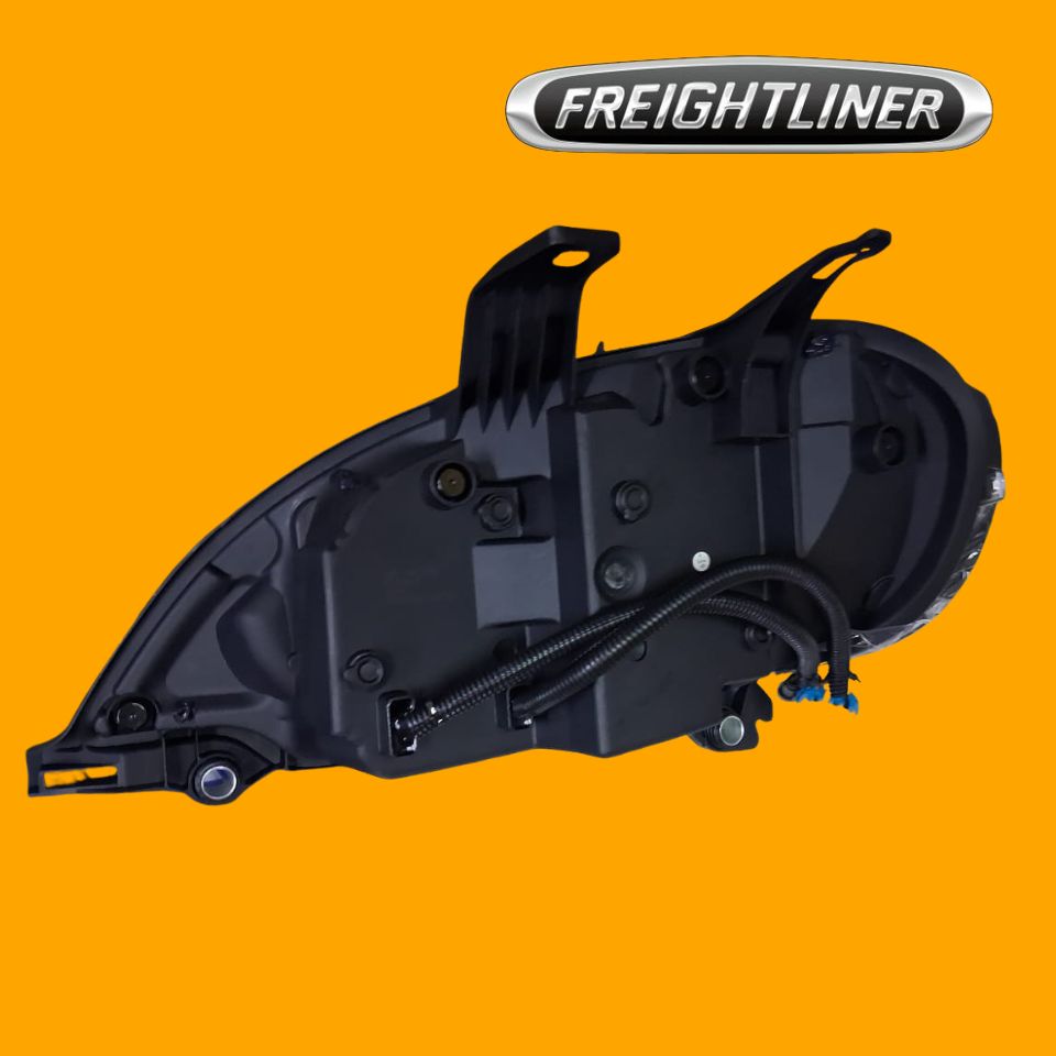 Foco LED derecho negro para Freightliner. Iluminación potente y uniforme, alta durabilidad y reemplazo directo para el camión, mejorando la visibilidad y seguridad en carretera.